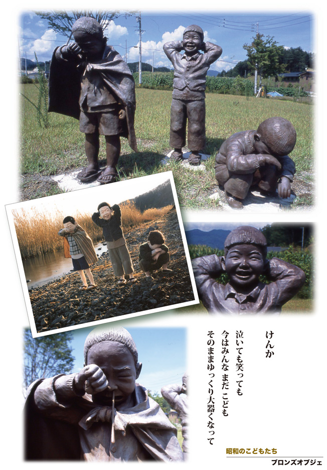ひとりひとりの人間のこころに共通する普遍的価値をあるがままのこどもの姿や開放的でおおらかな人間の姿をとおして永く後世に伝えたいとこれらの造形物に願いを込めました。